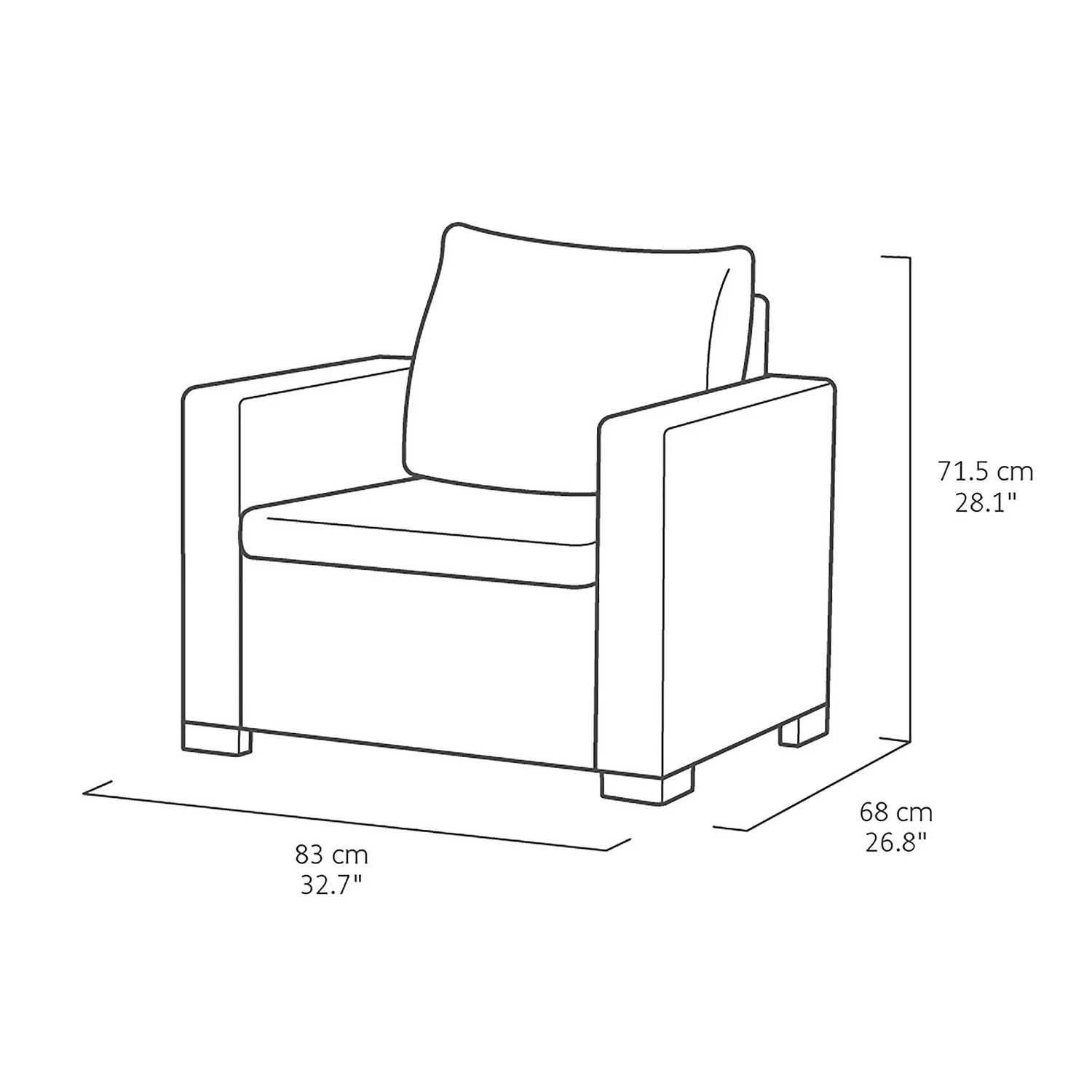 - Built for comfort with a cushion thickness of upto 7.5cm the California chaise longue set includes a 2 armchairs, x2 footstools with cushions to accommodate up to 2 people