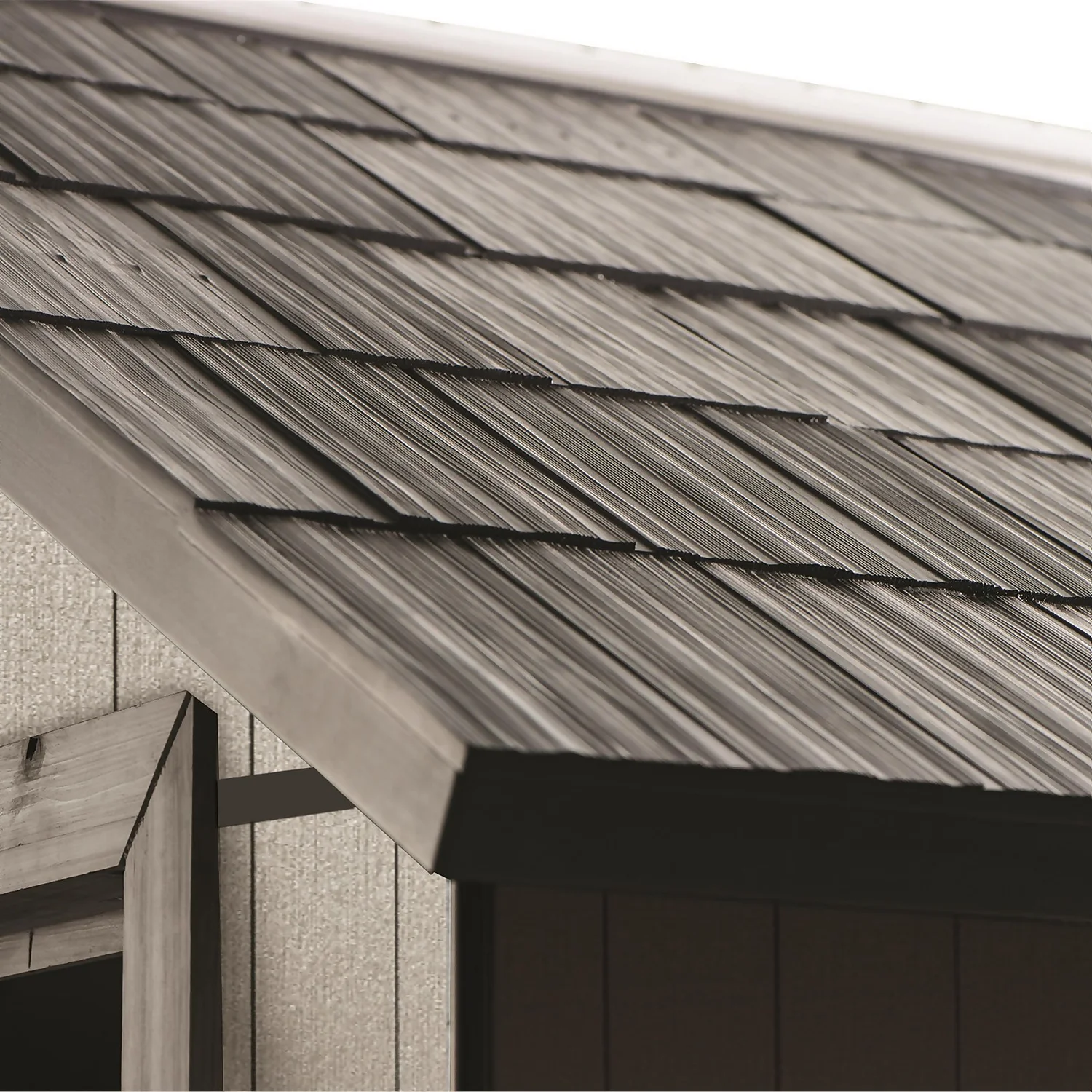 • Elegant and innovative wood effect exterior with paintable walls and pre-cut tongue and groove panels for easy assembly