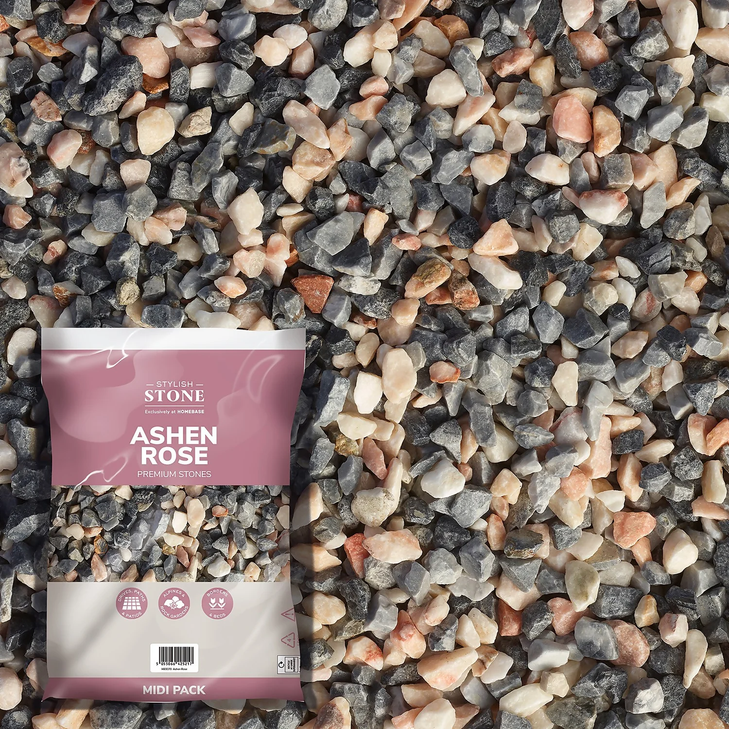 The hardwearing nature of these stones makes them equally suitable for footpaths and driveways. Make a statement in your garden by combining Ashen Rose chippings with other materials, such as slate or pebbles.