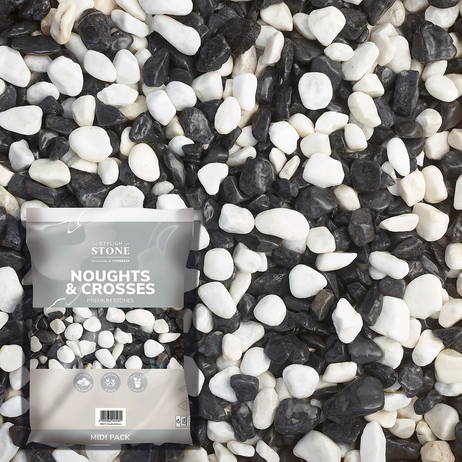 Noughts & Crosses pebbles (25-40mm) are great for borders, patios, walkways and driveways. These black and white decorative pebbles are ideal for adding texture and definition to your outdoor areas. This pebble is perfect for dressing feature areas to create beautiful displays.